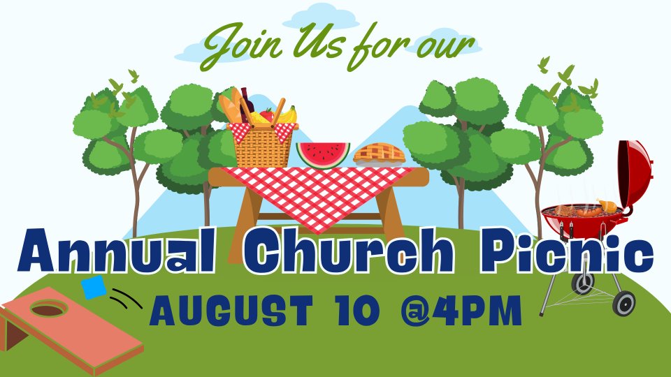 We will gather for our annual church picnic on the front lawn of the church. The picnic will include food, games, bounces houses, face painting, and lots of fun. The church will provide hamburgers, hot dogs, water, and lemonade. Please sign up to bring 2 sides here. (Remember to make enough to feed your family and the guests you invite). Please use the link below to shaare the sides you will bring.
