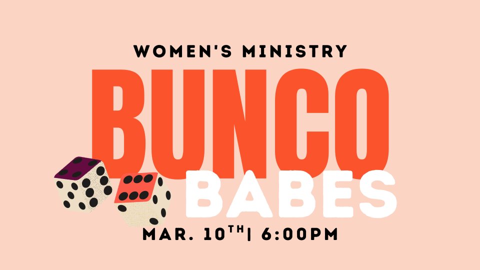 The SBC Women's Ministry, Bunco Babes, will meet at SBC every 2nd Tuesday at 6:00PM for a time of Bunco & fellowship. This is open to all women but we encourage you to register so we know how many to expect.