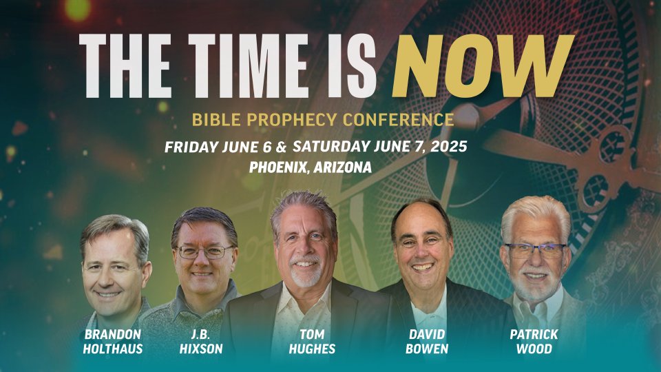Join us live in person to hear some of the top names in Bible prophecy. Pastor Tom Hughes, Pastor Brandon Holthaus, Pastor J.B. Hixson, and Patrick Wood are the most sought-after Bible prophecy teachers/speakers. The theme is The Time is NOW, and it is. Things the Bible said IS going to happen are happening! Hear firsthand from these trusted voices as you prepare to dive into current events such as global conflicts, shifting political landscapes, Israel, and the troubling rise of anti-Semitism. Never before has it been more critical to tune into Bible prophecy than it is today! Seating is limited, and it is on a first come, first serve basis, so please consider registering as soon as possible. This is the conference you do not want to miss. Through it all, our focus remains on the HOPE and unshakeable truths found in God’s Word. This conference will remind us that while the world may feel uncertain, God has already won the ultimate victory. We are called to live boldly as conquerors, sharing the light of Jesus Christ with those around us.