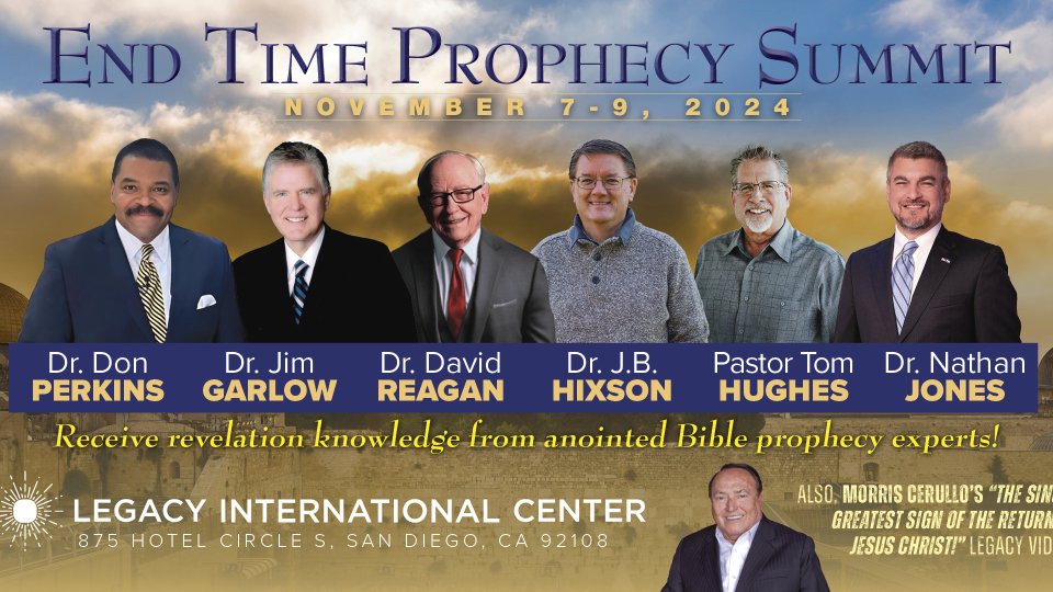 The Morris Cerullo Legacy International Center invites you to join us Nov 7-9 for our first-ever End Time Prophecy Summit to hear from some of the leading Bible prophecy experts from across the globe as we dig into the current headlines that point to Jesus' soon return including Dr. Morris Cerullo's worldwide classic message by video, "The Single Greatest Sign Of The Return Of Jesus Christ!" and this incredible panel of experts.