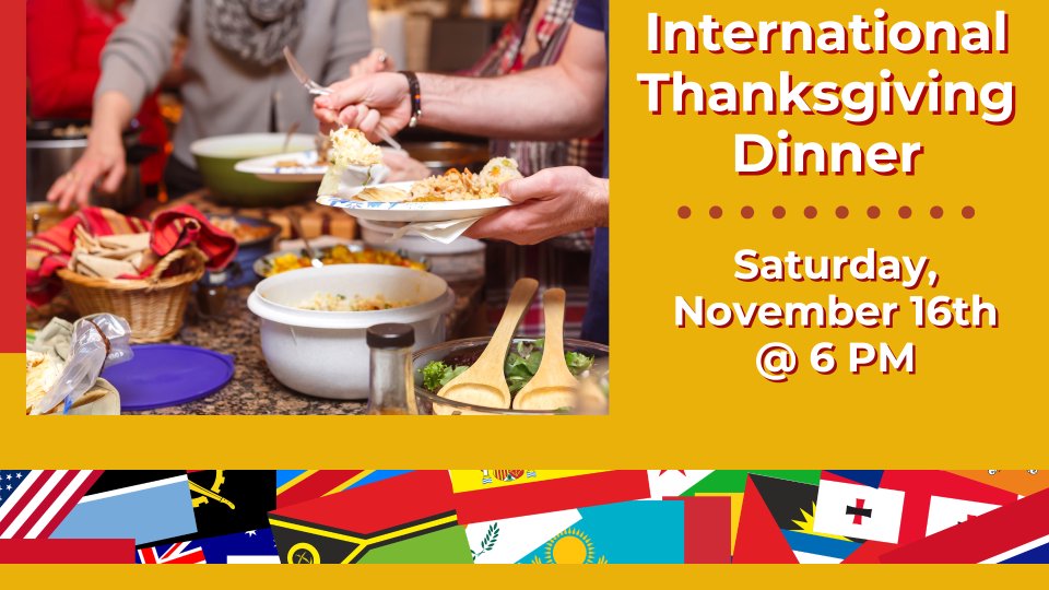 Join us for our International Thanksgiving dinner on Saturday, November 16th! We're asking everyone to bring a dish to share that reflects your cultural heritage or one that you have a personal connection with!