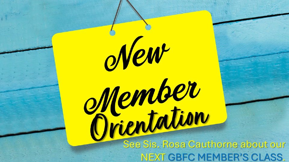 GBFC's Next Members Class will be Starting Soon. See Sis. Rosa Cauthorne for more details.