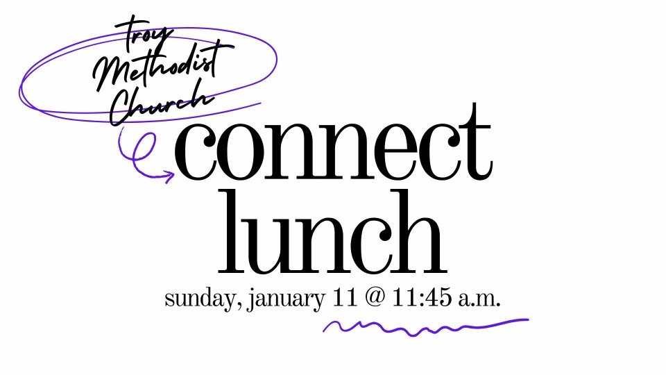 On Sunday, January 11, we will have a Connect Lunch following the 10:30 a.m. service. Starting at 11:45 a.m. and going until 1:30 p.m., we will enjoy lunch from Fire and Smoke BBQ, spend time getting to know each other, and provide time to answer questions about our church family. You will also have an opportunity to tour the church facilities to help you know your way around.