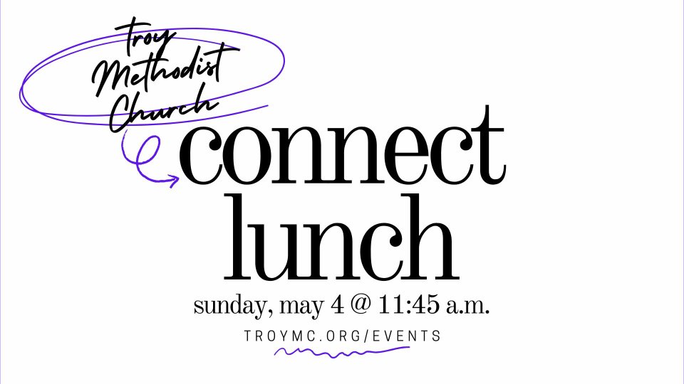 On Sunday, May 4, we will have a Connect Lunch following the 10:30 a.m. service. Starting at 11:45 a.m. and going until 1:15 p.m., we will enjoy lunch from Fire and Smoke, spend time getting to know each other, and provide time to answer questions you might have about our church family. Staff from various ministries will be available to answer questions and share about ways to get connected. We will also take a tour of our church facilities so you can get to know your way around.