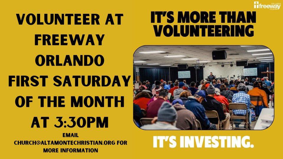 We invite to come and join us on the first Saturday of the month from 3:30pm to 7:30pm as we partner with Freeway Orlando to be a blessing to others. You can meet us at PSDBC at 3:00pm or at Freeway at 3:30pm.