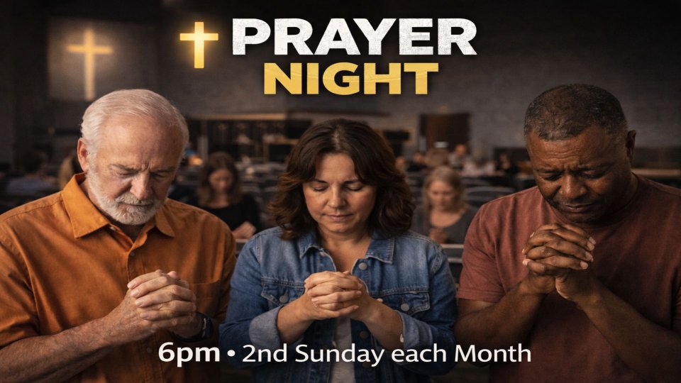 On the 2nd Sunday of every month at 6:00 PM, we gather for a powerful night of prayer. This isn’t a formal service — it’s intentional time set aside to seek the Lord together. We pray for our church, our families, our community, our nation, and whatever God places on our hearts.