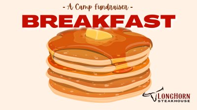 Join us at Longhorn Steak House in Live Oak on April 11 at 8:30am OR 9:30am for a Pancake Breakfast, and help send kids to Camp! Longhorn Steakhouse is sponsoring a portion of this meal and hosting us for a relaxing morning out as our campers serve short-stacks, eggs, sausage, juice and coffee, restaurant style! You can purchase tickets for either an 8:30am or 9:30am meal time. Bring your family, bring your life group, bring your neighbors, and send kids to camp!