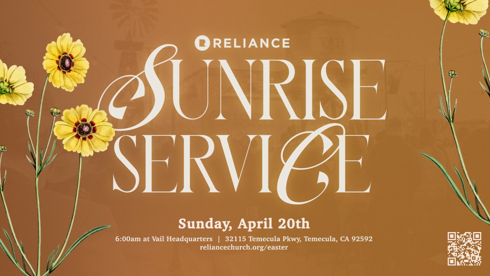 Come Easter Sunday, we will celebrate our risen King with a special Sunrise Service at Vail Headquarters and at the Reliance Church main campus with songs of worship and a special Easter message.