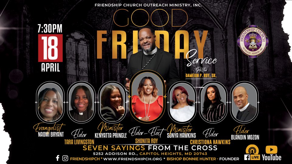 Join us for a powerful service featuring FCOM's own Ministers and Elders for the Seven Sayings From The Cross.