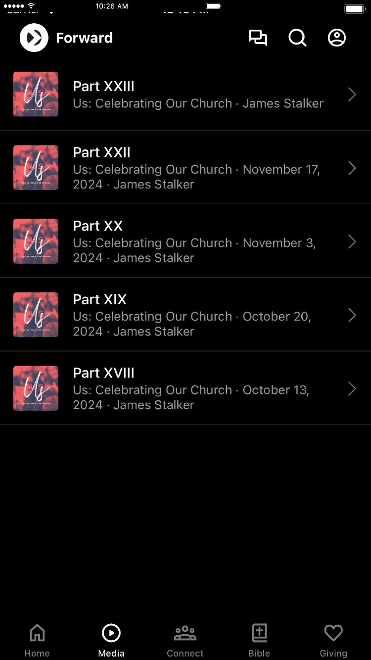 This app will help you stay connected with the day-to-day life of our church. With this app you can: watch or listen to past sermons; stay up to date with push notifications; share your favorite sermons via Twitter, Facebook, or email; and download sermons for offline listening.