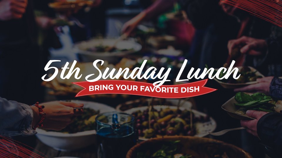 Throughout the year, join us for a special time of fellowship with 5th Sunday Lunch. On these days, simply bring your favorite dish to share (think homecoming/potluck), and after the worship service we will have a churchwide lunch together as a church family. Drinks, desserts, plates, and utensils will be provided. This will be a time you will not want to miss!