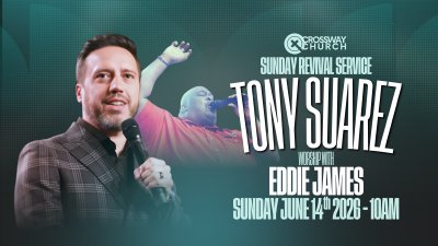 Sunday Revival Service | Tony Suarez with Eddie James Sunday, June 14, 2026 Join us at Crossway on Sunday, June 14, at 10 AM for a powerful morning with Tony Suarez bringing the Word and Eddie James leading worship. Come expecting God to move, hearts to be stirred, and lives to be changed. Do not come casual, come hungry. Crossway Church, Sunday at 10 AM.