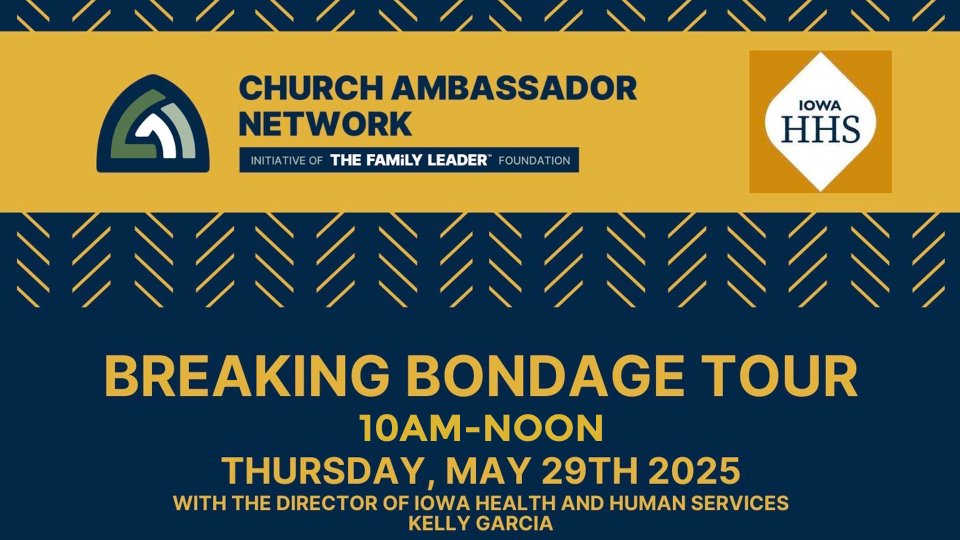 Join us to learn how the Church and Iowa Department of Health and Human Service can work together to break bondages in our communities. Since humans are both spiritual and physical, we believe answers must involve both physical and spiritual.
