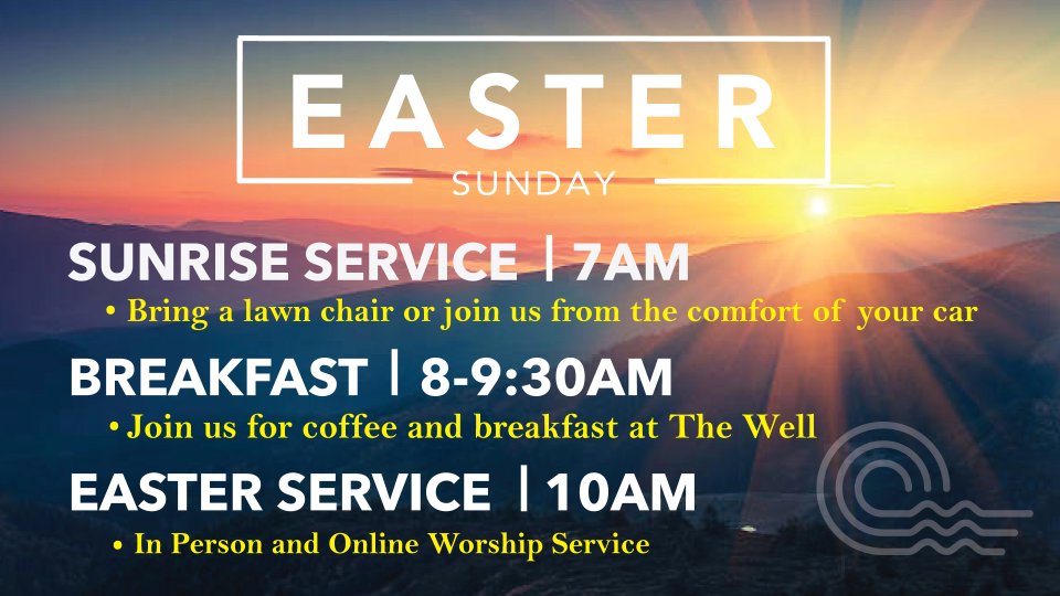 Join us Sunday March 31st as we celebrate the Resurrection of Jesus! There are THREE ways for you to join us. SUNRISE SERVICE 7AM BREAKFAST 8-9:30AM WORSHIP SERVICE 10AM