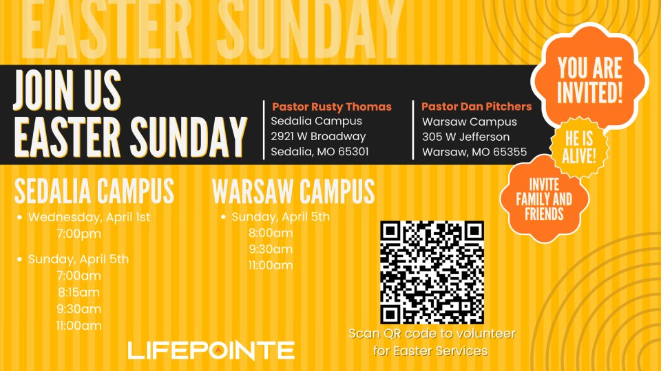 Easter reminds us that death was defeated and hope is alive because Jesus rose again. We invite you and your family to join us for a powerful time of worship, an encouraging message, and a welcoming community as we celebrate the resurrection together. Whether you attend church regularly or are looking for a place to visit this Easter, there is a place for you here.