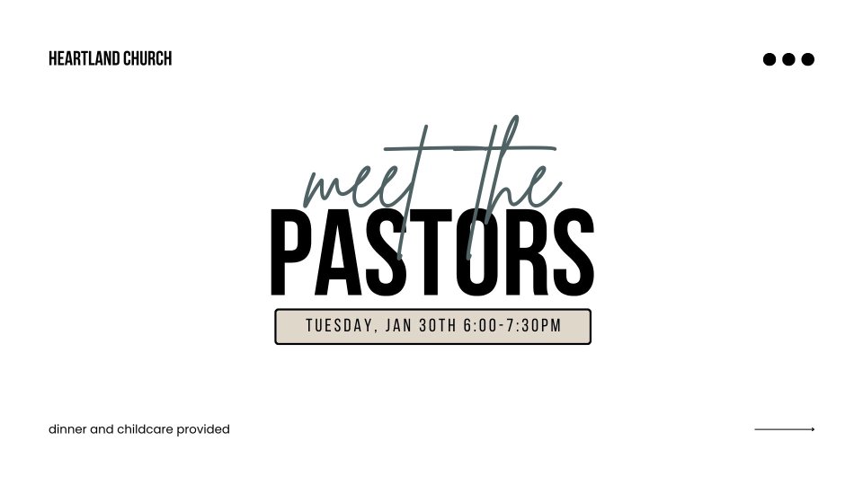 You are invited to join us for a FREE dinner and hang-out with our pastors! On Tuesday, January 30th 6:00-7:30pm we are hosting a "Meet the Pastors" event for anyone who is newer to Heartland and wants to get to know a bit more about our church and those who lead it. Childcare will be provided!