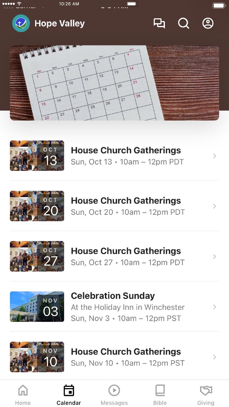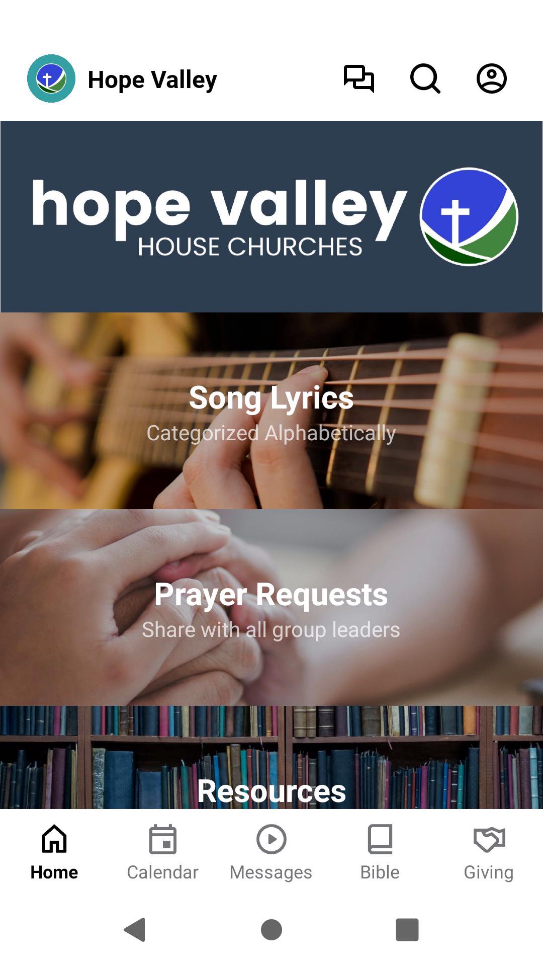 Download this app to stay connected with Hope Valley. Listen to past messages, give tithes and offerings, receive important push notifications, chat with groups in the church, locate church resources, and more. Hope Valley House Churches is a network of house churches that are based in Winchester, Virginia that is part of the International Church of the Foursquare Gospel.