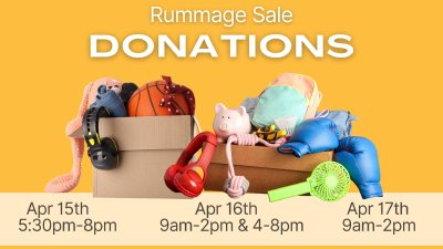 and Friday, April 17, 9-2pm, and pre-sale 6-7:30pm for members of the church only