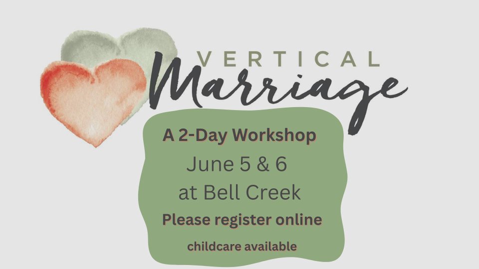 A 2-day Marriage Workshop at Bell Creek Community Church, led by Mike & Mary King and Alex & Elyse Quint. If you did the one last year, great, now here's a different one called Vertical Marriage by Family Life called with Dave & Ann Wilson. Meet in the sanctuary as we watch a series of videos, discuss questions in smaller groups and go through a workbook together with your spouse.