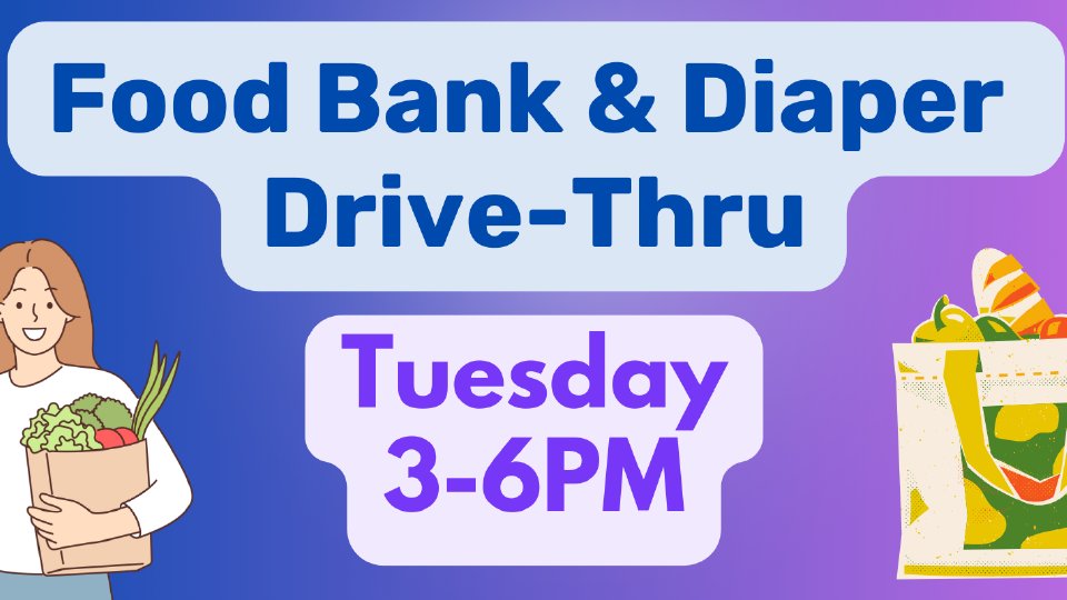 Join us the third Tuesday of each month from 3-6pm if you are a local resident in need of free food items or diapers/wipes. Volunteers are always needed and can show up anytime between 2-6pm to help out.