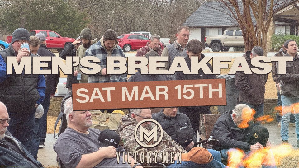 Calling all men! Join us for our Men's Breakfast on Saturday, March 15th at 8:30 AM. Join us at Victory Ranch our beautiful outdoor venue with a crackling campfire (just a few miles from the church campus).