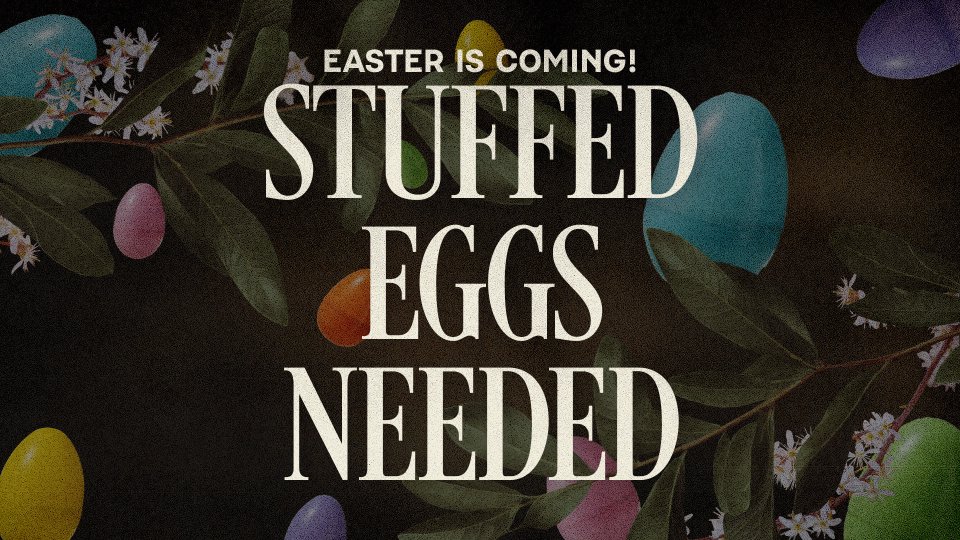 This Sunday, you can help Pipeline.Kids by donating stuffed eggs for Easter. This year, the goal is 2,000 eggs! You can drop off stuffed eggs with pre-filled candy (please no chocolate) or small prizes like stickers, stamps, and more outside of Rooms 5 and 6. Thank you for your generosity!