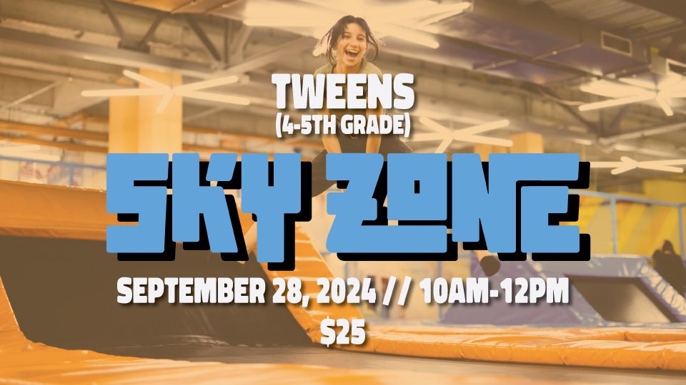 Our tweens (current 4th and 5th graders) will attend Sky Zone Trampoline Park in Raleigh on Saturday, September 28.