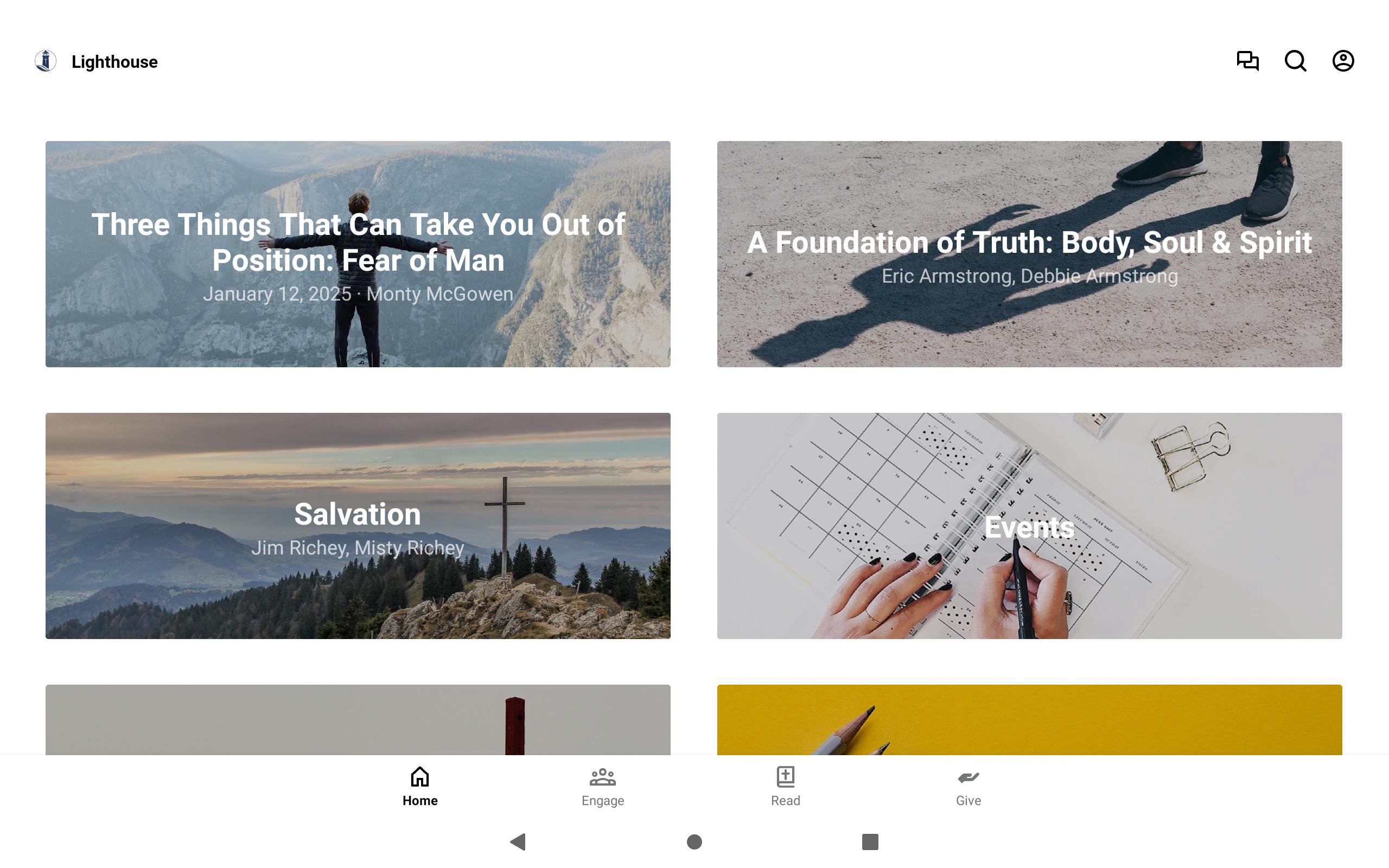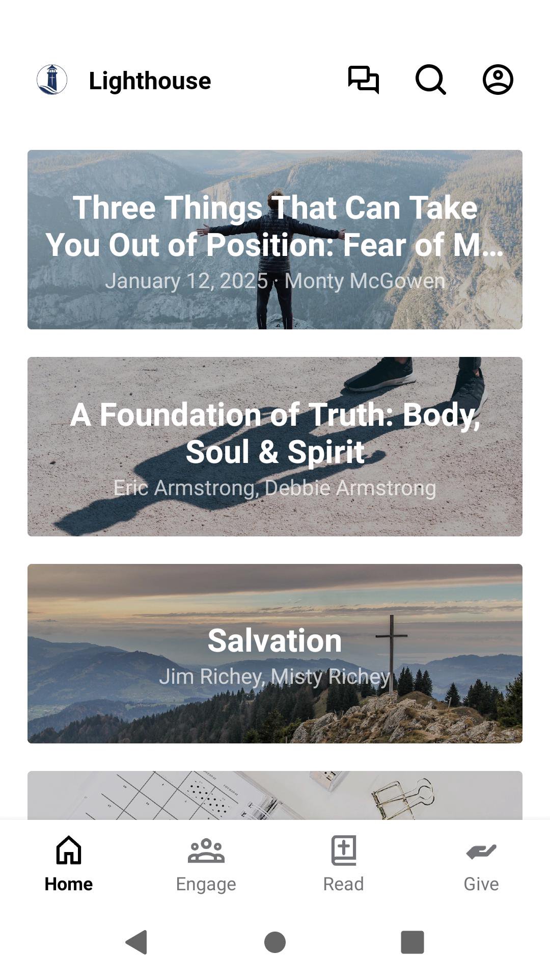 This app will help you stay connected with the day-to-day life of our church. With this app you can watch or listen to past messages, stay updated with push notifications, read the Bible, and view our calendar.