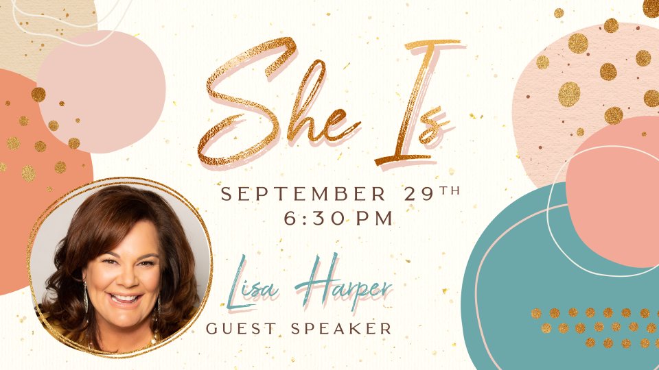SHE IS is a one-night women’s event happening on September 29th, 2022. We are excited to announce that Lisa Harper will be our speaker for She Is. Lisa is a 'hilarious storyteller' whose writing and speaking emphasize that accruing knowledge about God pales next to a real and intimate relationship with Jesus. If you would like to learn more about Lisa Harper's ministry visit https://lisaharper.org. This gathering will empower women as they encounter God together through powerful worship and His word. Amongst sisters, mothers, daughters and friends, we will be inspired to walk in the freedom of His calling and purpose for His daughters. When we experience the goodness and grace of our Father, we are encouraged in our identity and propelled into our divine destiny in Him! Frequently Asked Questions: How much are tickets? Each ticket is $20.00. What is the schedule for She Is? Thursday, September 29 6:30-8:30pm (CST). If you have purchased a meal voucher we will begin serving dinner at 5:30pm. Will childcare be provided? With She Is being a one night event and wanting all of our ladies to attend, we will not be providing childcare this year. For more information, visit the SHE IS website at www.sheisconferences.com or email Penny McHenry (pmchenry@livelife.church) or Montana Hendrix (mhendrix@livelife.church)
