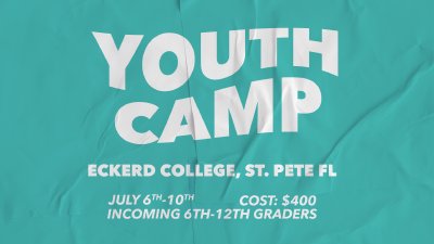 Students, do you want to deepen your relationship with Jesus? Grow in community? And have lots of fun? Join us for Summer Camp! This year we are going to be spending the week at Eckerd College in St Pete! When: July 6-10,2026, Where: Eckerd College , St.Petersburg, FL, Cost: $400, Who: Incoming 6th graders - 12th graders