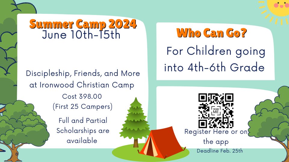 Discipleship, Friends and more! For children going into 4th-6th Grade. Total cost: $398 (First 25 Campers) Full and Partial Scholarships are available