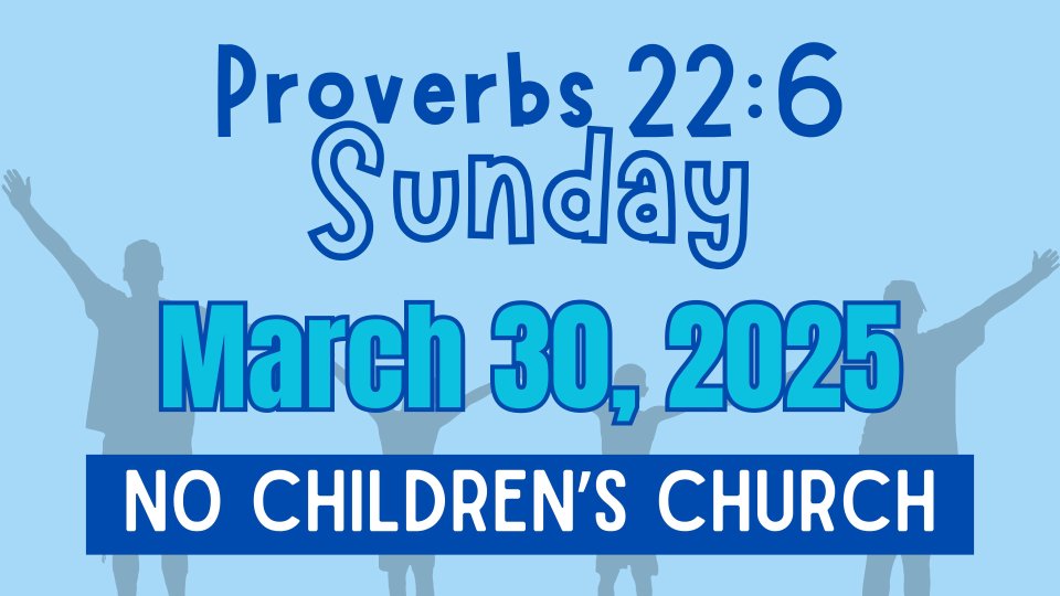 Sunday March 30th will be a Proverbs 22:6 Sunday! That means we will have NO KIDS CHURCH. We encourage you to bring your children into our worship service so that they can worship with you and listen to the preaching.