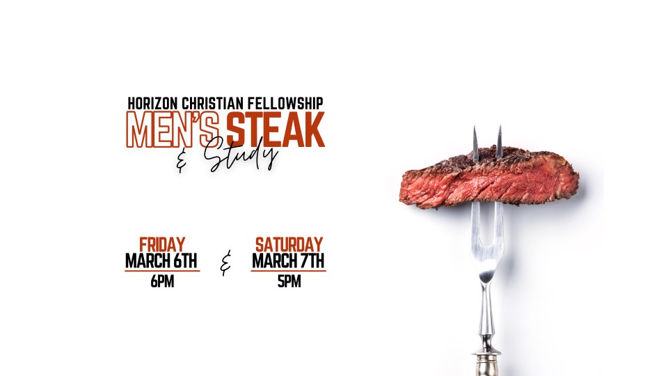 Men - join us for our annual steak & study! You have two dates to choose from - Friday, March 6th at 6:00pm or Saturday, March 7th at 5:00pm. Tickets are $25.00 each and go on sale Sunday, January 25th. Raffle items will be available for an additional cost and the proceeds benefit the men's ministry.