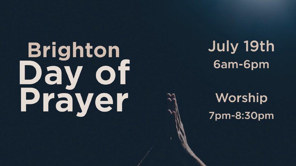 Prayer is so vital in everything we do, so on July 19th the Brighton Campus will be hosting a Day of Prayer. The building will be open throughout the day for people to come and pray. Come pray over our lives, our city, our ministries, and for God to move throughout this world. It’ll be a come and go event from 6am-6pm, followed by an evening of worship/prayer from 7pm-8:30pm.