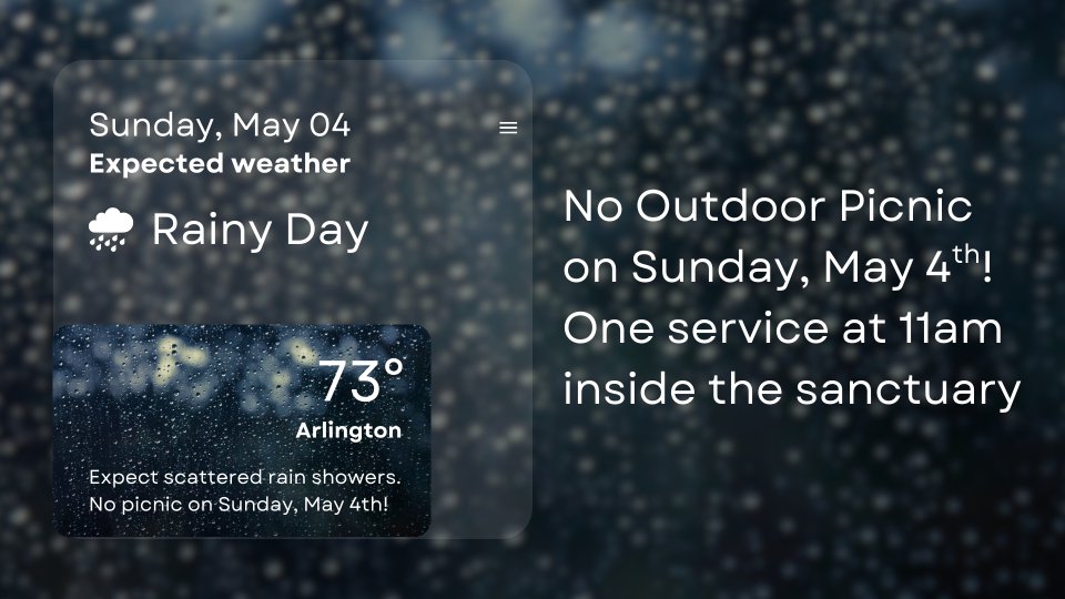 Join us for a special one-service gathering tomorrow at 11 AM as we come together to support our missionaries, the Childs. We’ll be indoors to stay dry from the rain. Our outdoor picnic will be rescheduled to a new date, which we’ll announce soon!