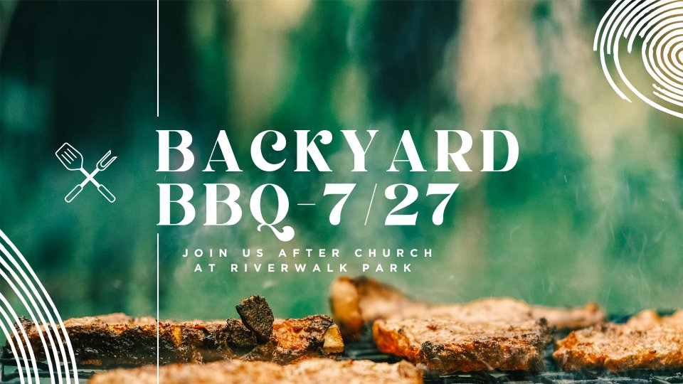 All are welcome to join us at Riverwalk Park after service on Sunday, July 27th for a summer BBQ!