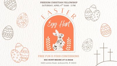 Join Us for the Annual Easter Egg Hunt at Freedom Christian Fellowship! Hop on over to 3423 Loretto Rd for a fun-filled day at our Easter Egg Hunt! Event Details: - Date: April 4th, 2026 - Starts at 11:00 AM - End Time: 2:00 PM - Food Concessions Available - FREE Face Painting! - Cotton Candy & Popcorn! - FREE Balloon Animals! - Free & Fun for All Communities! Bring your family and friends to enjoy this exciting, FREE event with games, goodies, and more! Don’t miss out—it's a day of fun for all ages, celebrating the life, death and resurrection of Jesus! “He is not here; He has risen, just as He said.” — Matthew 28:6 (NIV)