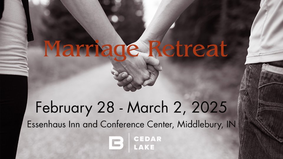 In our church family, it is our goal to help marriages flourish and thrive in Christ, so we want to proactively offer support. All married couples from our Cedar Lake campus are invited to join us for a Marriage Retreat, held at the Das Essenhaus Inn and Retreat Center in Middlebury, IN on February 28-March 2, 2025.