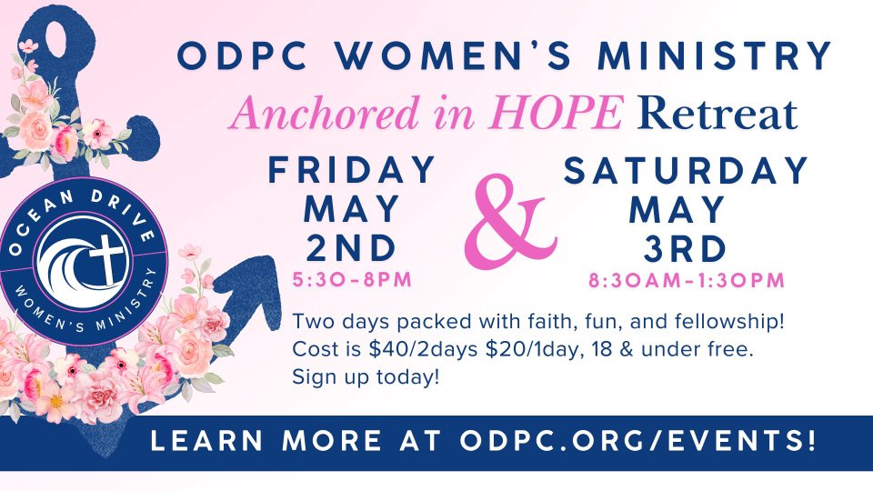 Ladies, join us for TWO days packed with faith, fellowship and the Word of God at the Anchored in HOPE Retreat! Friday, May 2nd from 5:30pm to 8:00pm & Saturday, May 3rd from 8:30am to 1:30pm. Hear powerful testimonies of God’s faithfulness and enjoy delicious meals with us both days, all as we grow in the Word of God together. Keep reading for sign up information and ticket costs.