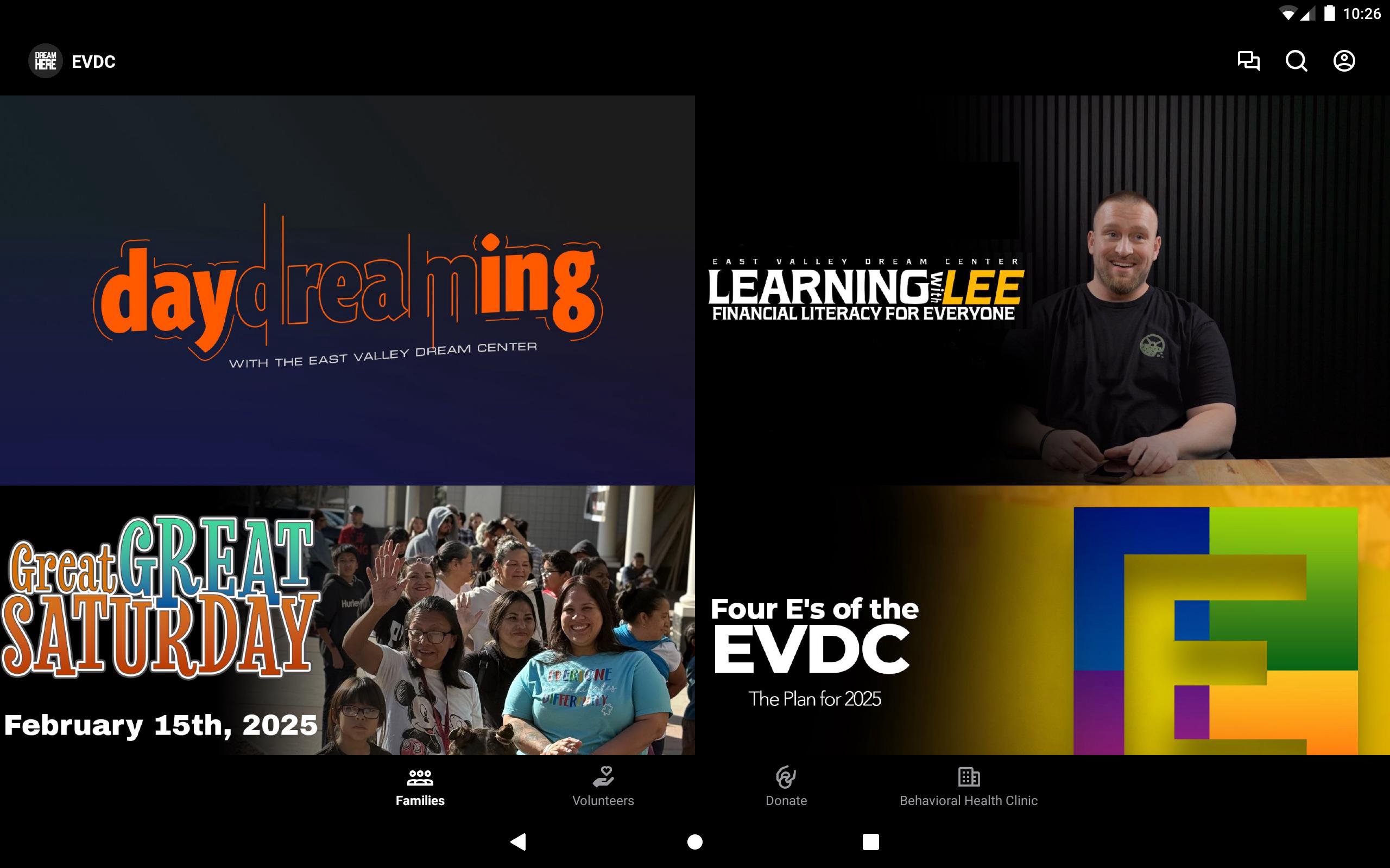 Exciting Updates on the East Valley Dream Center App! We're thrilled to announce new features to enhance your experience and keep you connected to our mission of empowering our community through the 4 E’s: Education Check out our new Learning with Lee video series, designed to boost financial literacy and provide practical tips to improve your money management skills. Economics Explore resources that empower you to build better financial habits and discover new ways to support your economic growth. Emotional Health Stay tuned for upcoming mental and emotional wellness resources to support you and your family. Events Get the latest updates on Amplifying Andersen—an initiative supporting local schools. Register for upcoming events with just a few taps. There’s so much more to explore and get involved with! Download or update your app today and stay connected to all things East Valley Dream Center. Together, we’re making dreams a reality.