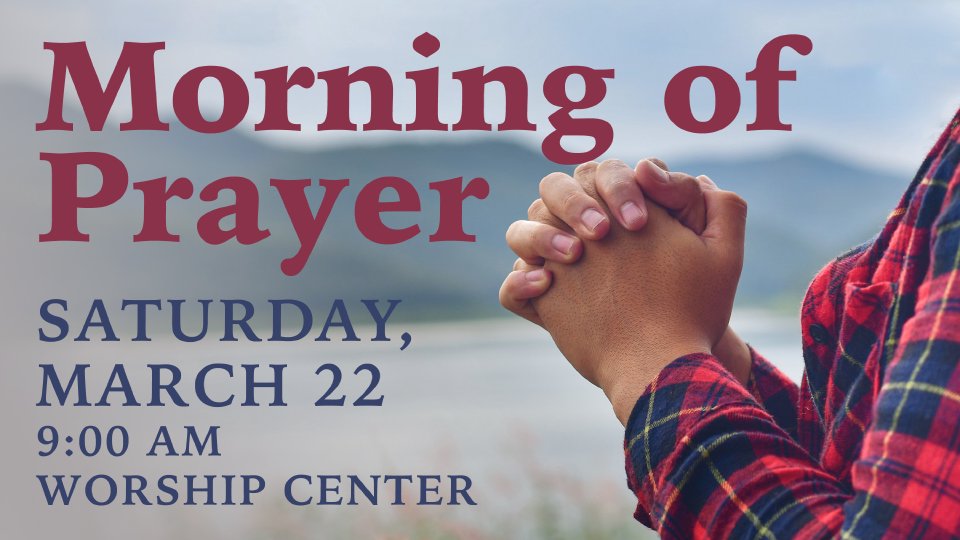Join us for our next morning of prayer on Saturday, March 22 at 9:00 a.m. in the Worship Center. Our monthly prayer time takes place just after Deacon’s Meeting.