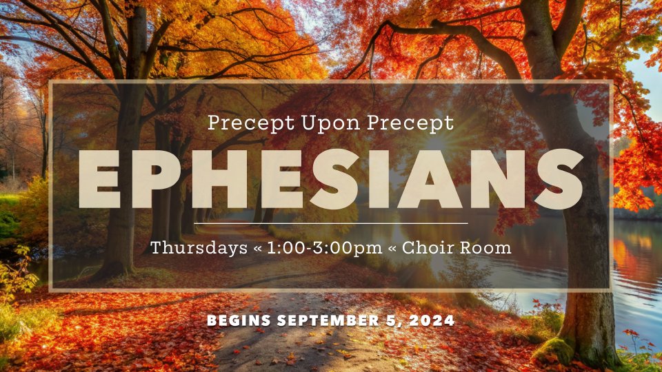 Our study of Ephesians - The Church: Rooted in Love, Walking in Power will begin Thursday, September 5 at 1:00 p.m. in the Choir Room. Please register online, books are $25 and may be picked up in the church office. Complete the first lesson before our first meeting.