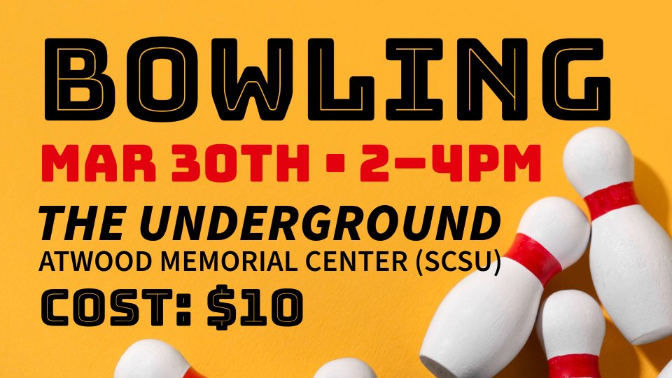 Located in the lower level of Atwood Memorial Center the Underground provides bowling and other activities right on the campus of St. Cloud State with eight lanes of bowling, pool tables, table tennis, darts, and foosball. Bowling shoes are included, you bring the socks.