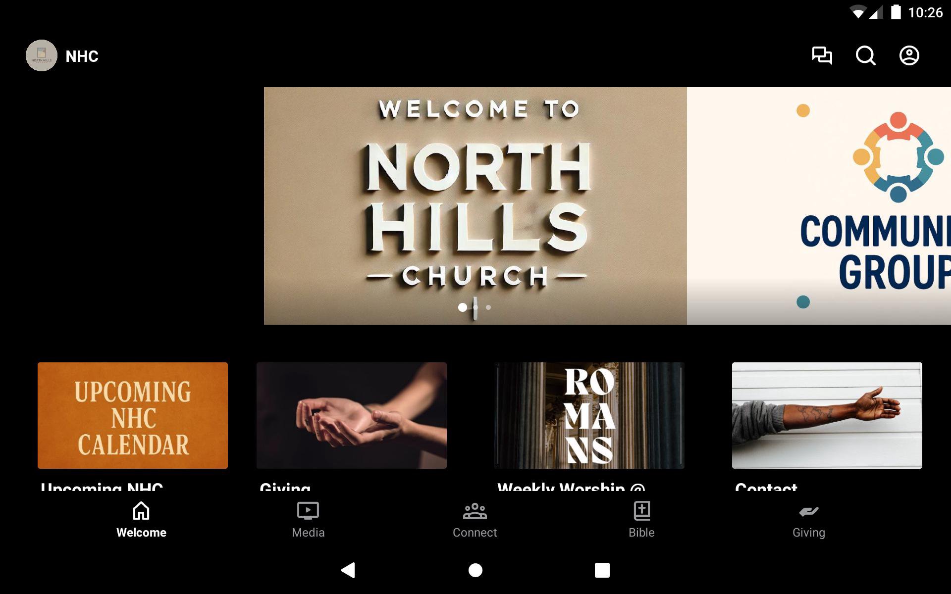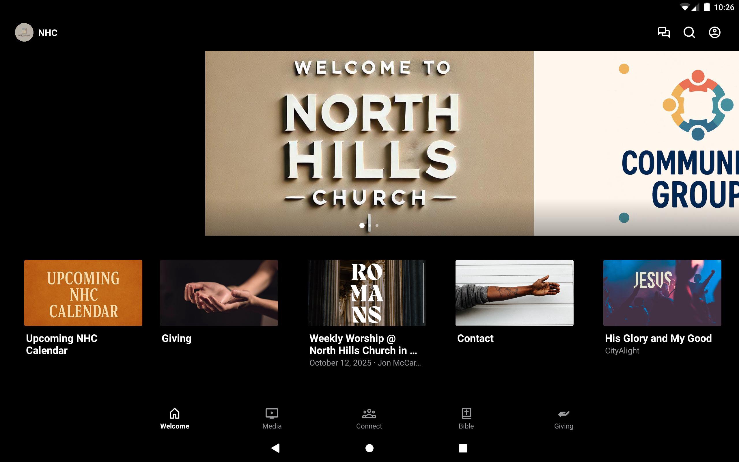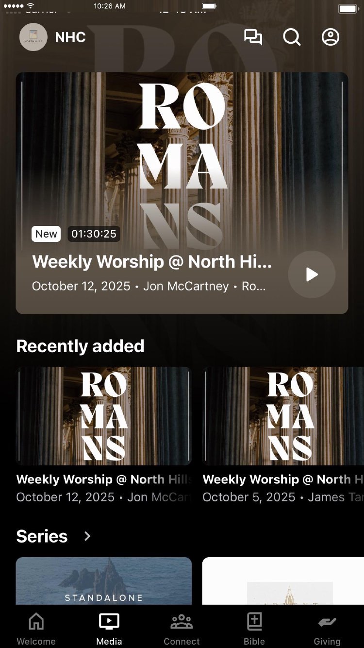 This app should help you stay connected to the ministries of North Hills and give you an avenue for communication. You can watch Sunday services, listen to sermons, and connect to small groups, all from the app.