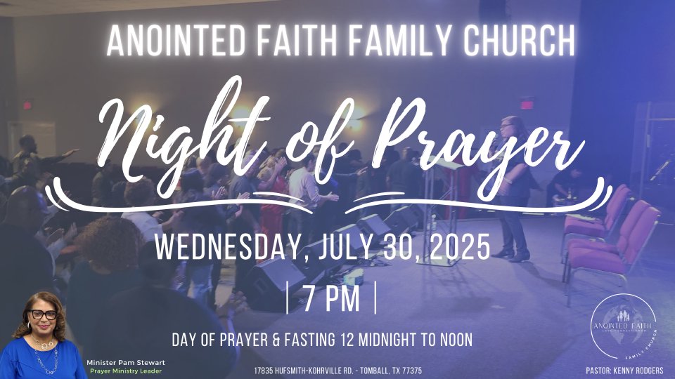 Join us for a day of fasting & night of in-person prayer at Anointed Faith Family Church.