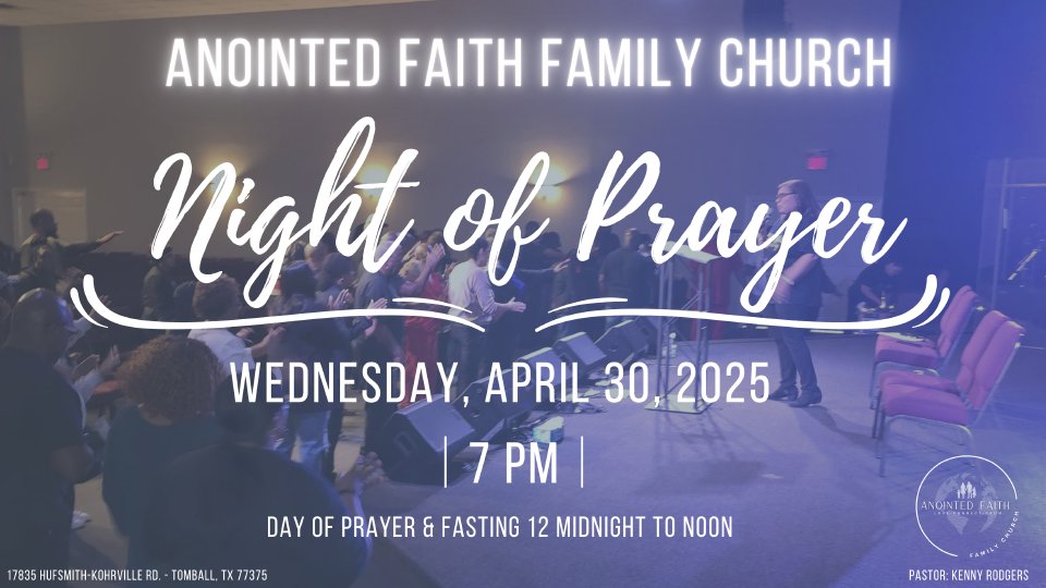 Join us for a day of fasting & night of in-person prayer at Anointed Faith Family Church.