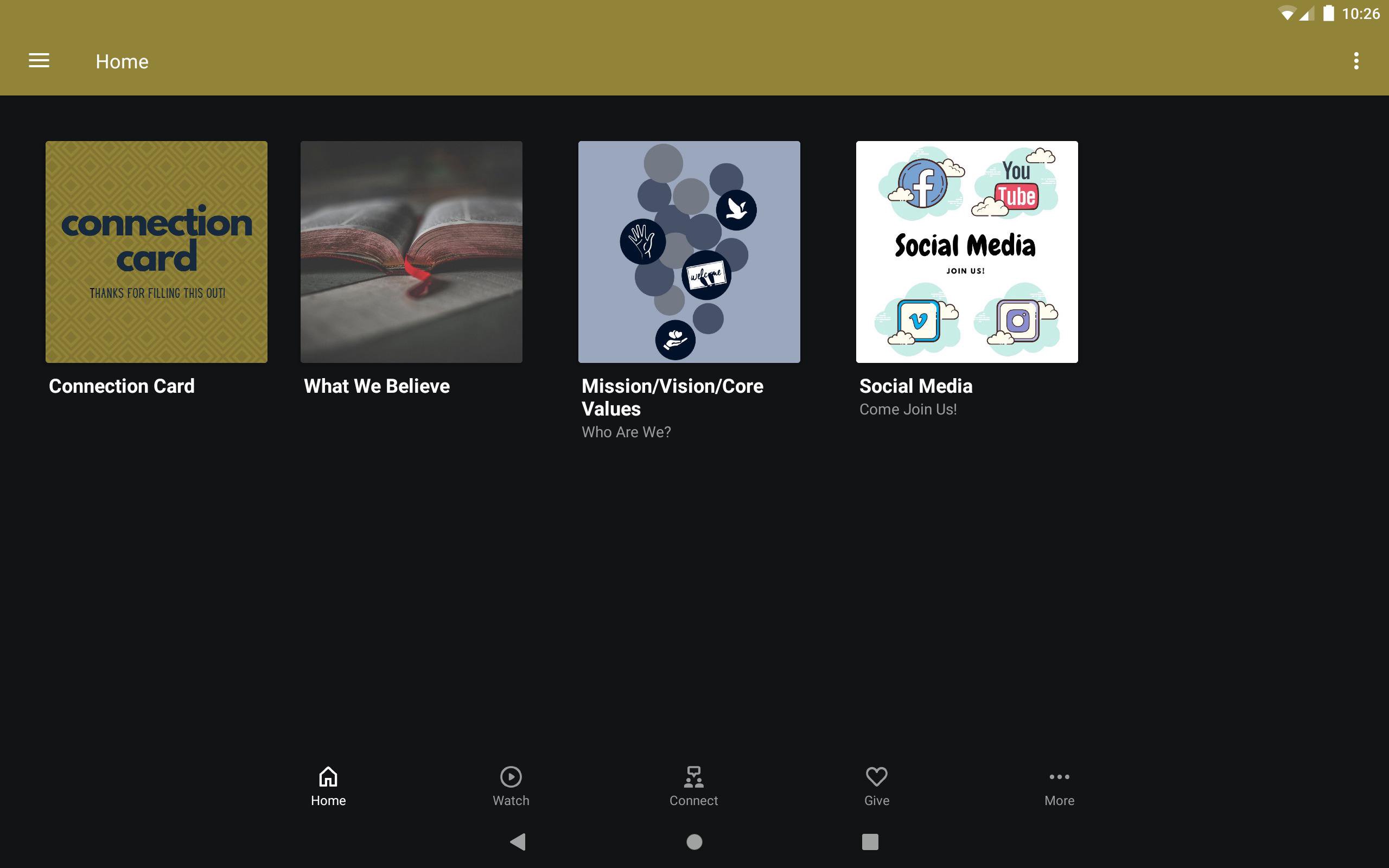 This app will help you stay connected to our church. With this app, you can watch or listen to past messages and tune into a live stream when available.