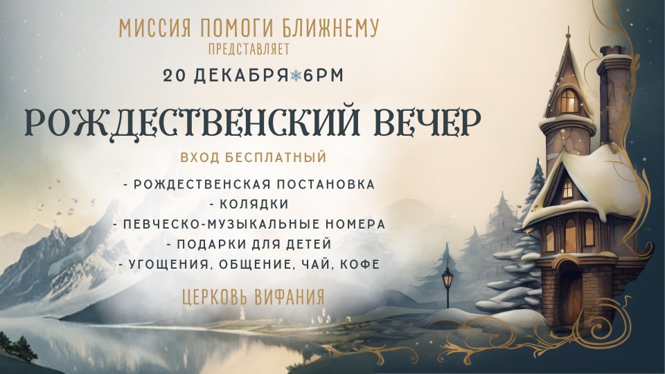 Миссия «Помоги Ближнему» приглашает на РОЖДЕСТВЕНСКИЙ ВЕЧЕР!