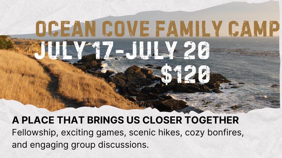 Hey Bethany Families! Get ready for an unforgettable adventure at Ocean Cove with Bethany Church! We’re thrilled to invite you to our family camp, packed with fun and connection. Enjoy fellowship, exciting games, scenic hikes, cozy bonfires, and engaging group discussions—all designed to bring us closer together. It’s the perfect chance to create lasting memories and build new relationships within our church family. Pack your bags and join us for a weekend of laughter, love, and community at the beautiful Ocean Cove.