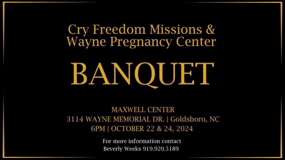 Join us for an unforgettable evening at the Cry Freedom Missions and Wayne Pregnancy Center Banquet on October 24th! We still have tables available for Thursday night, and we’re inviting you to help us fill them. As a table host, you'll ensure guests feel welcomed and comfortable during this powerful evening. The event is free to attend, with a delicious meal provided, and an opportunity to give a financial love gift to support the ministry. You’ll hear inspiring testimonies from survivors and enjoy a performance by our staff choir. Don't miss this chance to make a difference!